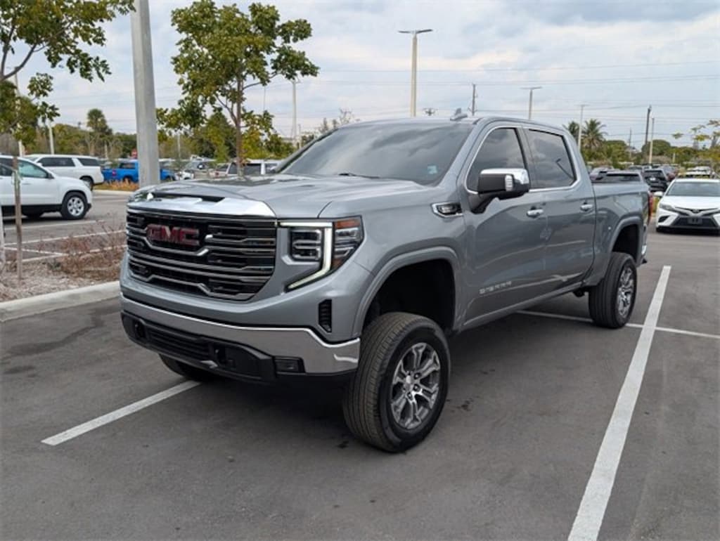 MIKE MAROONE CHEVROLET CERTIFIED, BLUETOOTH, BACKUP CAMERA, FRESHLY SERVICED, NEW TIRES, NEW BRAKES, FREE FLORIDA DELIVERY, POWER SEATS, ICE COLD A/C, 10-Speed Automatic, 4WD, Black Leather, 120-Volt Bed Mounted Power Outlet, 120-Volt Interior Power Outlet, 170 Amp Alternator, 2 Charge/Data USB Ports, 2 Charge/Data USB Ports Inside Center Console, 2 Type-C Charge-Only Rear USB Ports, 6-Speaker Audio System Feature, Adaptive Cruise Control, Auto-Locking Rear Differential, Auxiliary External Transmission Oil Cooler, Chrome Header & Chrome Grille Insert Bars, Color-Keyed Carpeting Floor Covering, Deep-Tinted Glass, Electric Rear-Window Defogger, Electronic Precision Shift, Floor-Mounted Center Console, Front Bucket Seats, Front Frame-Mounted Black Recovery Hooks, Front Rain-Sensing Wipers, HD Rear Vision Camera, Heated 2nd Row Outboard Seats, Hitch Guidance, Integrated Trailer Brake Controller, Keyless Open & Start, LED Cargo Area Lighting, Manual Tilt-Wheel & Telescoping Steering Column, OnStar Services Capable, Perimeter Lighting, Power Door Locks, Power Front Passenger Windows w/Express Up/Down, Power Front Windows w/Driver Express Up/Down, Power Rake & Telescoping Steering Column, Power Rear Windows w/Express Down, Power Sliding Rear Window w/Rear Defogger, Preferred Equipment Group 4SA, Premium Bose 7-Speaker Sound System, Push Button Start, Rear Wheelhouse Liners, Remote Vehicle Starter System, SiriusXM w/360L Trial Subscription, SLT Convenience Package, SLT Preferred Package, Steering Wheel Audio Controls, Theft Deterrent System (Unauthorized Entry), Trailering Package, Universal Home Remote, Ventilated Driver & Front Passenger Seats, Wi-Fi Hotspot Capable, Wireless Charging. 2025 GMC Sierra 1500 SLT 4WD Sterling Metallic Odometer is 2572 miles below market average! Certified. GMC Certified Pre-Owned Details: