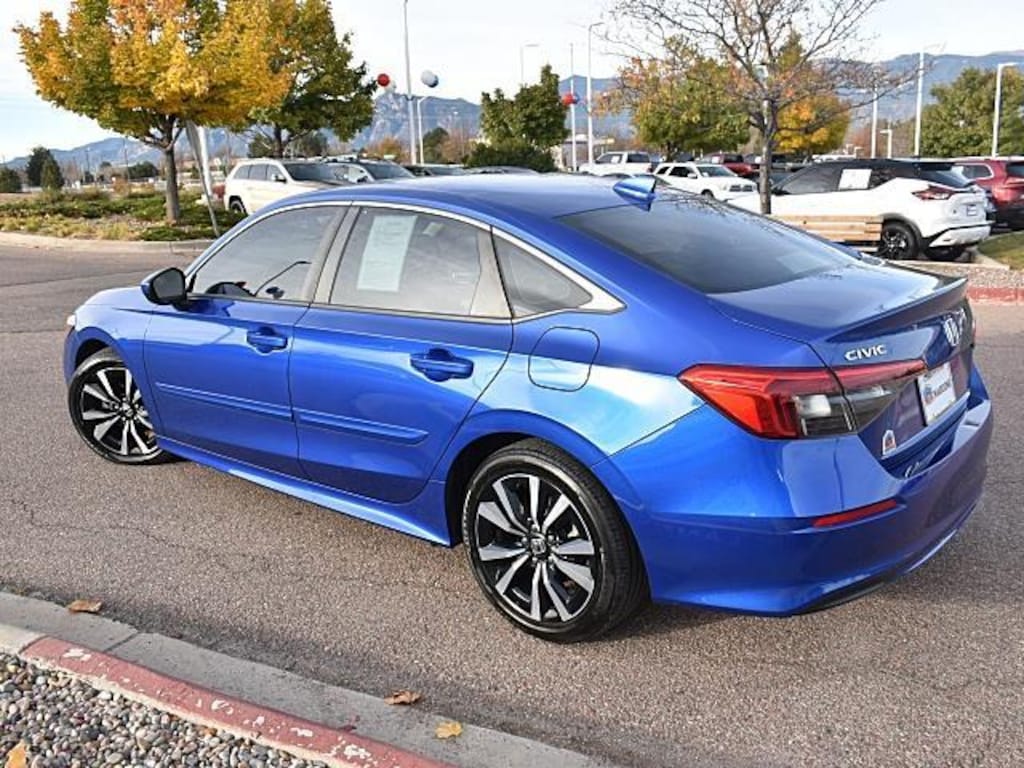 This Certified 2022 Honda Civic Sedan EX, has a Aegean Blue Metallic exterior and an Black interior color. 36,699 miles. Stock Number H319078. You can connect with us by calling (719) 602-5882.