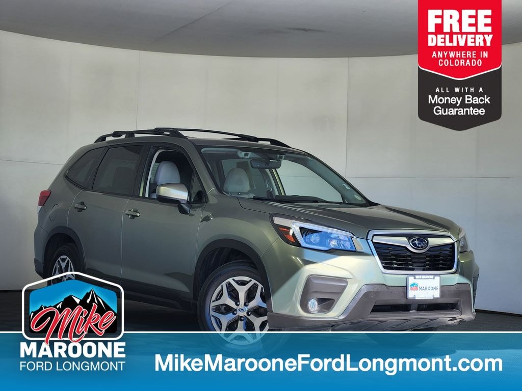 New Price! Recent Arrival! Mike Maroone Ford Clean CARFAX. CARFAX One-Owner. 2021 Subaru Forester Premium AWD, Jasper Green Metallic Exterior, 2.5L Horizontally-Opposed DOHC 4-Cylinder Engine with Auto Start-Stop, Lineartronic CVT with X-Mode, Symmetrical All-Wheel Drive, 17-Inch Aluminum Alloy Wheels, Panoramic Power Moonroof, Blind Spot Detection with Rear Cross Traffic Alert and Lane Change Assist, Power Rear Gate with Height Memory, Dual Rear USB Ports, STARLINK 6.5-Inch Multimedia System with Apple CarPlay and Android Auto, SiriusXM Radio, Bluetooth Hands-Free Connectivity, 10-Way Power Driver Seat with Power Lumbar, Heated Front Seats, Adaptive Cruise Control, EyeSight Driver Assist Technology, Pre-Collision Braking, Lane Keep Assist, Automatic Climate Control, Keyless Access with Push-Button Start, Rear Vision Camera, All-Weather Floor Liners, Cargo Tray, Rear Seat Back Protector, Cargo Net, 29 MPG Combined (26 City / 33 Highway), Destination and Delivery $1,050.00, Total Suggested Retail Price $31,166.00. Jasper Green Metallic 2021 Subaru Forester Premium 4D Sport Utility 2.5L 4-Cylinder DOHC 16V VVT Lineartronic CVT AWD
