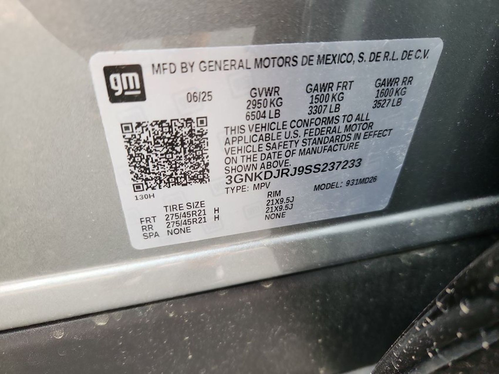 VIN3GNKDJRJ9SS237233