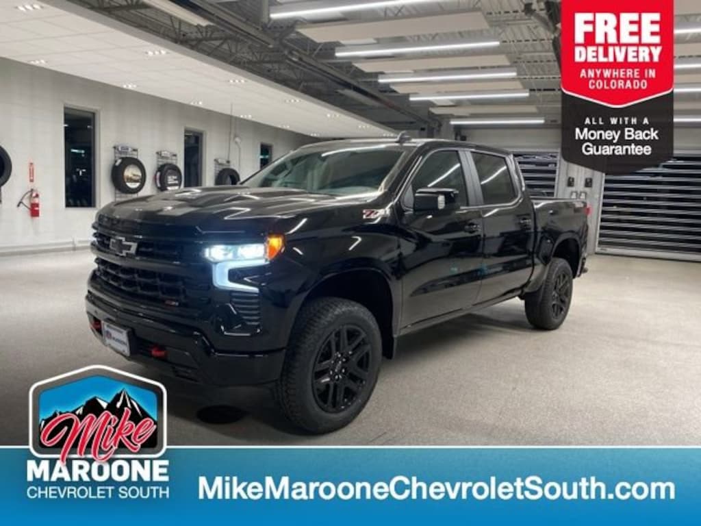 COME SEE THIS BEAUTIFUL 2026 Chevrolet Silverado 1500 LT Trail Boss AT MIKE MAROONE CHEVROLET SOUTH 230 N ACADEMY BLVD COLORADO SPRINGS CO, 3 DAY 150 MILE MONEY BACK GUARANTEE**, FREE DELIVERY ANYWHERE IN COLORADO**, 10-Way Power Driver Seat w/Lumbar, 12.3 Multicolor Reconfigurable Digital Display, 120-Volt Bed Mounted Power Outlet, 120-Volt Interior Power Outlet, 220 Amp Alternator, 6-Speaker Audio System, All-Weather Floor Liner (LPO) (AAK), Apple CarPlay/Android Auto, Auto High-beam Headlights, Bluetooth® For Phone, Bluetooth® For Phone, Chevytec Spray-On Black Bedliner, Convenience Package, Convenience Package II, Dual Rear USB Ports (Charge Only), Dual-Zone Automatic Climate Control, Electric Rear-Window Defogger, Electronic Stability Control, Emergency communication system: OnStar, EZ Lift Power Lock & Release Tailgate, Following Distance Indicator, Forward Collision Alert, Fully automatic headlights, HD Surround Vision, Heated Driver & Front Outboard Passenger Seats, Heated Power-Adjustable Outside Mirrors, Heated Steering Wheel, High Gloss Black Mirror Caps, Hitch Guidance, Hitch Guidance w/Hitch View, In-Vehicle Trailering System App, Keyless Open & Start, Leather Package, Leather-Appointed Front Seat Trim, LED Cargo Area Lighting, LT Trail Boss Premium Package, Manual Tilt/Telescoping Steering Column, Perimeter Lighting, Power Sliding Rear Window w/Rear Defogger, Power Sunroof, Power Tailgate, Premium audio system: Chevrolet Infotainment 3 Premium, Protection Package, Radio: Chevrolet Infotainment 3 Premium System, Rear Cross Traffic Braking, Rear Pedestrian Alert, Rear Wheelhouse Liners, Remote keyless entry, Remote Vehicle Starter System, Safety Package, SiriusXM w/360L Trial Subscription, Steering wheel mounted audio controls, Telescoping steering wheel, Theft Deterrent System (Unauthorized Entry), Trailer Camera Provisions, Trailer Side Blind Zone Alert, Trailering Package, Ultrasonic Front & Rear Park Assist, Universal Home Remote, Up-Level Rear Seat w/Storage Package, Wheels: 20 x 9 High Gloss Black Painted Alum, Wi-Fi Hot Spot Capable, Wireless Charging, Wrapped Steering Wheel. 2026 Chevrolet Silverado 1500 LT Trail Boss 4WD 10-Speed Automatic EcoTec3 5.3L V8 Black Recent Arrival! Price includes: $1500 - GM Bonus Cash. Exp. 02/02/2026 $3250 - Chevrolet Consumer Cash Program. Exp. 02/02/2026
