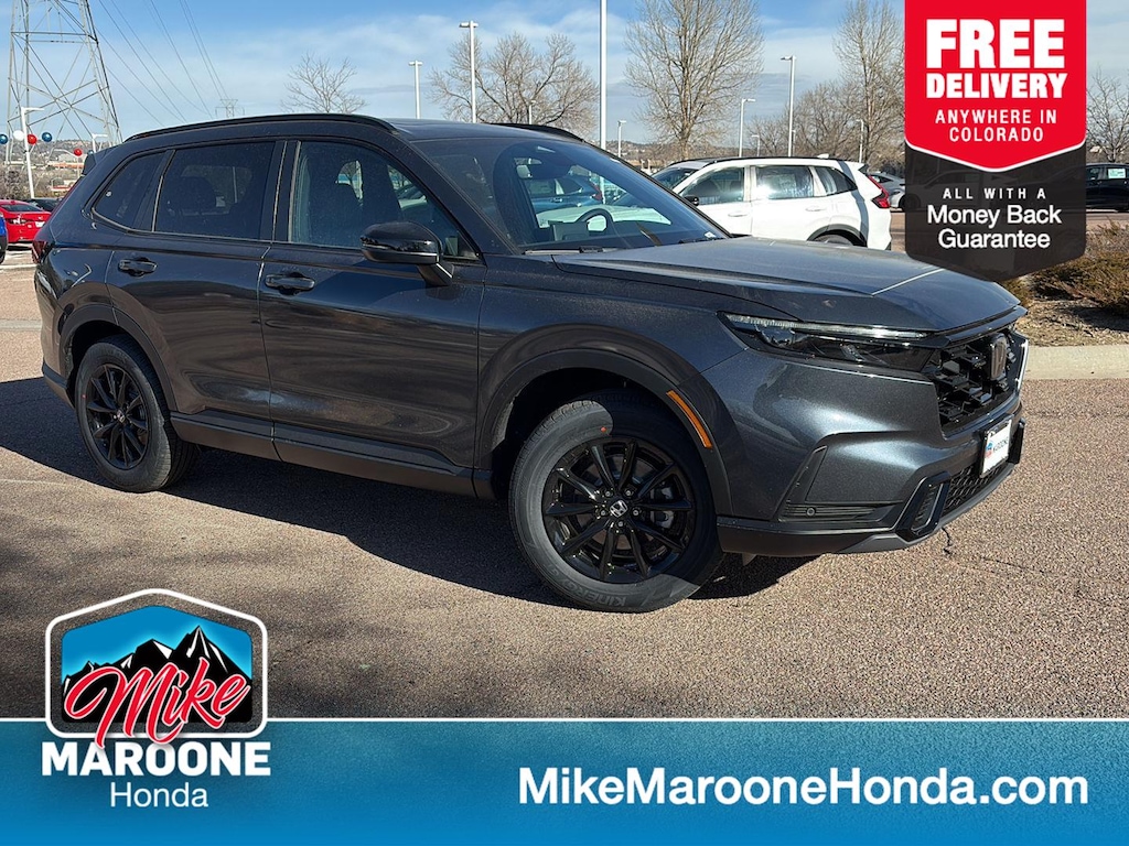 This New 2026 Honda CR-V Hybrid Sport-L, is Meteorite Gray Metallic in color with an Black interior. Stock Number H085214. You can connect with us by calling (719) 602-5882.