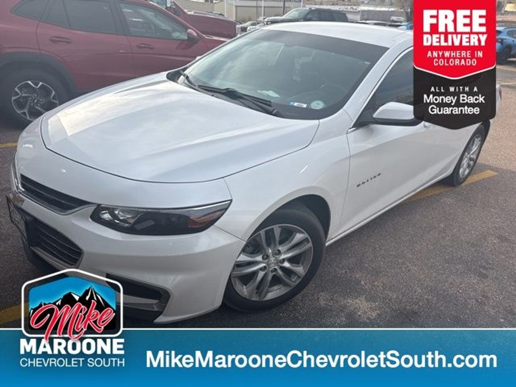 THIS IS BEING SOLD AS IS NO WARRANTY** THIS CAN BE FINANCED WITH APPROVED CREDIT**, COME SEE THIS BEAUTIFUL 2016 Chevrolet Malibu AT MIKE MAROONE CHEVROLET SOUTH 230 N ACADEMY BLVD COLORADO SPRINGS CO, 3 DAY 150 MILE MONEY BACK GUARANTEE**, FREE DELIVERY ANYWHERE IN COLORADO**, 1 FREE MONTH ONSTAR (IF EQUIPPED)**, 3 FREE MONTHS XM RADIO (IF EQUIPPED)**, CHEVROLET MYLINK**, 8″ COLOR TOUCHSCREEN**, APPLE CARPLAY**, ANDROID AUTO**, AIR CONDITIONING**, ALLOY WHEELS**, FRESH OIL & FILTER CHANGE**, KEYLESS OPEN**, KEYLESS START**, KEYLESS ENTRY**, CRUISE CONTROL**, POWER WINDOWS**, POWER LOCKS**, POWER SEAT**. FWD Certification Program Details: THIS 2016 Chevrolet Malibu IS SOLD AS-IS NO WARRANTY** THIS VEHICLE COMES WITH A FULL MECHANICS INSPECTION AVAILABLE AT REQUEST** ALL SAFETY RELATED REPAIRS HAVE BEEN DONE TO THIS VEHICLE. THIS VEHICLE CAN BE FINANCED WITH APPROVED CREDIT. FOR MORE INFORMATION COME SEE US AT 230 N. ACADEMY BLVD COLORADO SPRINGS CO 80909. **SE HABLA ESPAÑOL TAMBIEN** Odometer is 23940 miles below market average!