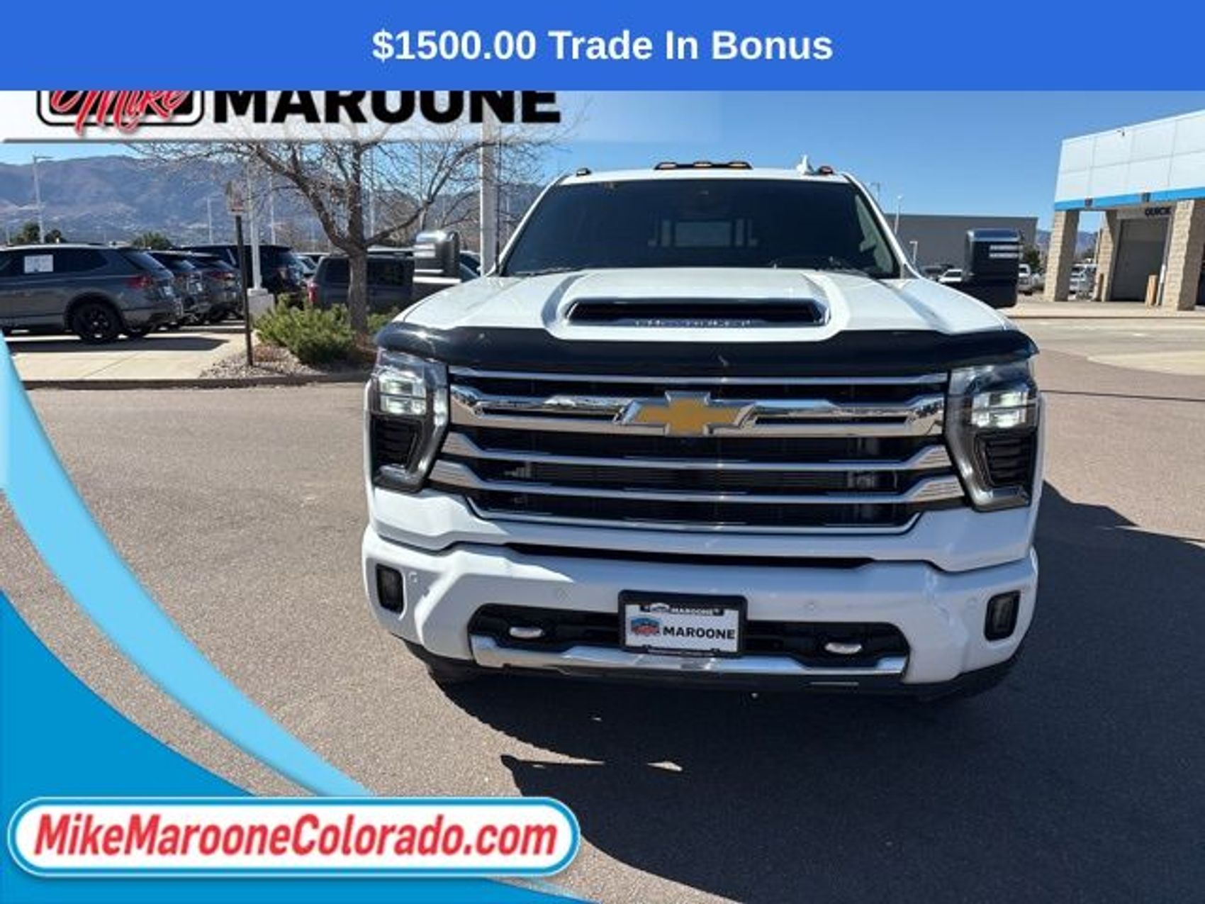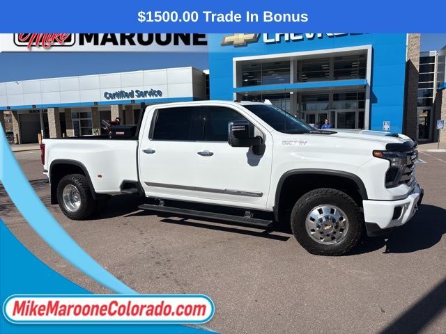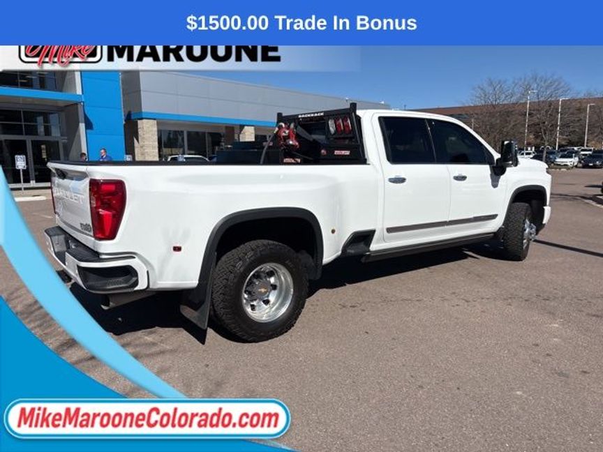 Recent Arrival! 2024 Chevrolet Silverado 3500HD High Country 4D Crew Cab Clean CARFAX. ** CHEVROLET CERTIFIED **, BACK UP CAMERA, BOSE PREMIUM SOUND **, FREE DELIVERY ANYWHERE IN COLORADO **, HEATED SEATS **, LEATHER SEATING **, NAVIGATION SYSTEM **, POWER MOONROOF **, PREMIUM SOUND **, Navigation System. Duramax 6.6L V8 Turbodiesel 10-Speed Automatic 4WDThis Silverado 3500HD comes with the FULL Mike Maroone a 60-Day 3000 Mileage Powertrain Warranty. We will review our technician’s vehicle inspection report with you before purchase. Our intention is to provide you a completely transparent buying experience. At Mike Maroone our used vehicles are Safety Checked, Warrantied, CarFax, and if you don’t like it … Bring it back! For more information or vehicles like it, stop by Mike Maroone North today. We are just north of the Chapel Hills mall behind Walmart in the Chapel Hills Auto Mall.