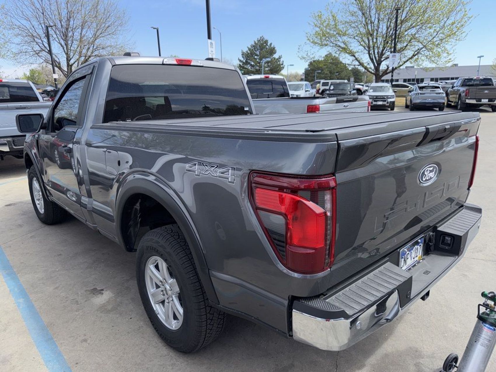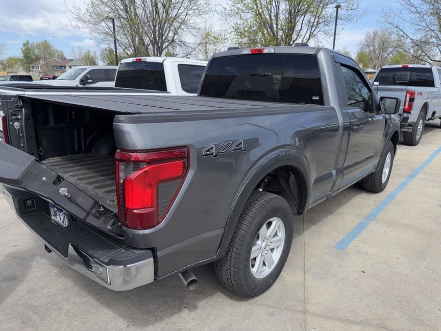 Recent Arrival! This vehicle is located at Mike Maroone Ford Longmont, 235 Alpine St, Longmont, CO 80501, please call (303) 776-2861 for more information.CARFAX One-Owner. FREE DELIVERY ANYWHERE IN COLORADO, 2025 Ford F-150 XL Regular Cab 4×4, 5.0L V8 Engine, 10-Speed Automatic Transmission, 4×4, Carbonized Gray Metallic Exterior, Dark Slate Cloth Interior (40/20/40 Bench), Equipment Group 103A, SYNC 4 w/ 12″ Touchscreen, FordPass Connect w/ WiFi Hotspot, Lane Keeping System, Pre-Collision Assist w/ AEB, Blind Spot Monitoring w/ Cross-Traffic Alert, Rear View Camera, Reverse Brake Assist, Class IV Trailer Hitch, Smart Trailer Tow Connector, Selectable Drive Modes, Chrome Front & Rear Bumpers, LED Fog Lamps, 17″ Silver Painted Aluminum Wheels, Electronic Locking Rear Axle, Bedliner ToughBed Spray-In, Privacy Glass w/ Rear Defrost, Cruise Control, Tilt/Telescoping Steering Wheel, Work-Ready V8 Power & Capability, 19 MPG Combined. Carbonized Gray Metallic 2025 Ford F-150 XL 2D Standard Cab 5.0L V8 10-Speed Automatic 4WD