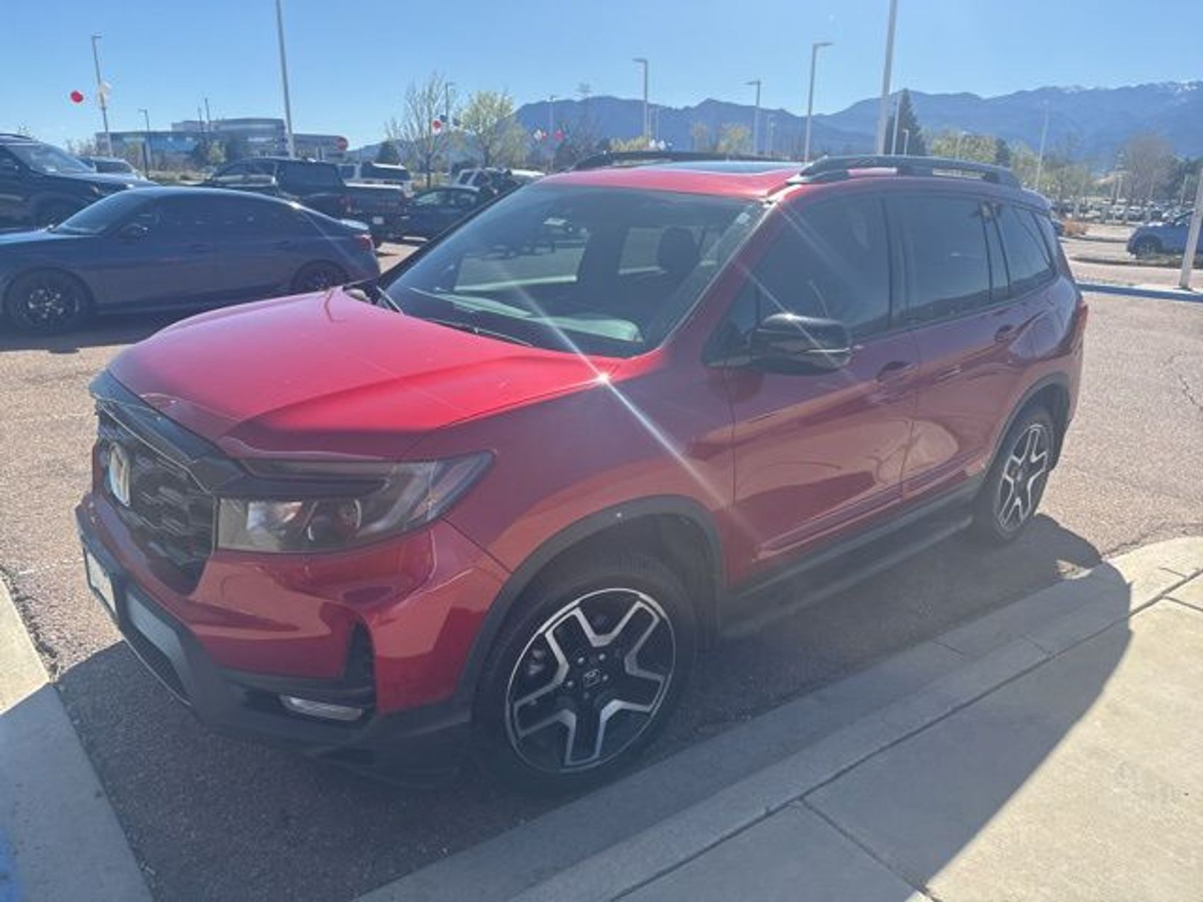 Experience the ultimate blend of luxury and rugged capability in this 2023 Honda Passport AWD Elite, finished in a stunning Radiant Red Metallic II. Powered by a robust 280-hp 3.5L i-VTEC V6 engine and a smooth 9-speed automatic transmission, this top-tier SUV features Honda’s Intelligent Variable Torque Management (i-VTM4) AWD system for superior traction in any terrain. The Elite trim offers a premium cabin experience with heated and ventilated leather seats, a 540-watt premium audio system, and 20-inch machine-finish alloy wheels, making it the perfect vehicle for both family adventures and refined daily driving.Mechanical & PerformanceEngine: 3.5L V6 24-Valve SOHC i-VTECHorsepower: 280 hp @ 6000 rpmTransmission: 9-Speed Automatic with Shift-By-Wire and Paddle ShiftersDrivetrain: Intelligent Variable Torque Management (i-VTM4) AWD SystemTowing Capacity: Up to 5,000 lbsEmissions: CARB-Certified LEV3-ULEV125 SystemExterior FeaturesPremium Paint: Radiant Red Metallic II (RL)Wheels: 20-inch Machined-Finish Alloy Wheels with Black InsertsTires: 265/45R20 104H All-Season TiresLighting: LED Low-Beam Headlights, Fog Lights, and Brake LightsConvenience: Hands-Free Access Power Tailgate and Rain-Sensing WipersInterior & InfotainmentUpholstery: Black Perforated Leather-Trimmed SeatsFront Seating: Heated and Ventilated Front Bucket SeatsRear Seating: Heated Outboard Rear SeatsAudio: 540-Watt Premium Audio System with 10 Speakers (including Subwoofer)Technology: Honda Satellite-Linked Navigation System with Voice RecognitionConnectivity: Wireless Phone Charger, Apple CarPlay, and Android AutoComfort: Tri-Zone Automatic Climate Control and Heated Leather-Wrapped Steering WheelSafety & Driver Assistance (Honda Sensing)Collision Mitigation Braking System (CMBS)Road Departure Mitigation System (RDM)Adaptive Cruise Control (ACC)Lane Keeping Assist System (LKAS)Blind Spot Information System (BSI) with Cross Traffic MonitorCARFAX One-Owner. Clean CARFAX. REMAINDER OF FACTORY WARRANTY, AWD, Blind Spot Information (BSI) System warning, Heated & Ventilated Front Bucket Seats, Lane departure: Lane Keeping Assist System (LKAS) active, Navigation system: Honda Satellite-Linked Navigation System. 2023 Honda Passport Elite 3.5L V6 24V SOHC i-VTEC 9-Speed Automatic AWD Odometer is 3730 miles below market average! Certified.Honda Dealership Serving Fountain and Pueblo, CO Drivers – Mike Maroone Honda Honda Sales, Service, and Parts in Colorado Springs, CO If you have been longing to get into a new Honda close to Colorado Springs, CO, then right now is an ideal opportunity to find your next auto at a low cost, here at Mike Maroone Honda. From Honda’s popular small cars like the Fit, Civic, and HR-V to the versatile CR-V and Pilot SUVs and new Ridgeline pickup truck, each new Honda model can be found here at our Colorado Springs, CO dealership. Discover your new Honda in Colorado Springs now, or visit our dealership for a test spin of your dream car.Recent Arrival!HondaTrue Certified Details: * Vehicles purchased within New Vehicle Limited Warranty period: extends New Vehicle Limited Warranty to 5 years*/60,000 miles*. Honda Care Roadside Assistance for 2 year/100,000 miles (whichever occurs first). Up to two complimentary oil changes within the first year of ownership. SiriusXM 90-Day Trial. * Transferable Warranty * Warranty Deductible: $0 * Powertrain Limited Warranty: 84 Month/100,000 Mile (whichever comes first) from original in-service date * 182 Point Inspection * Limited Warranty: 24 Month/100,000 Mile (whichever comes first) after new car warranty expires or from certified purchase date * Roadside Assistance * Vehicle History