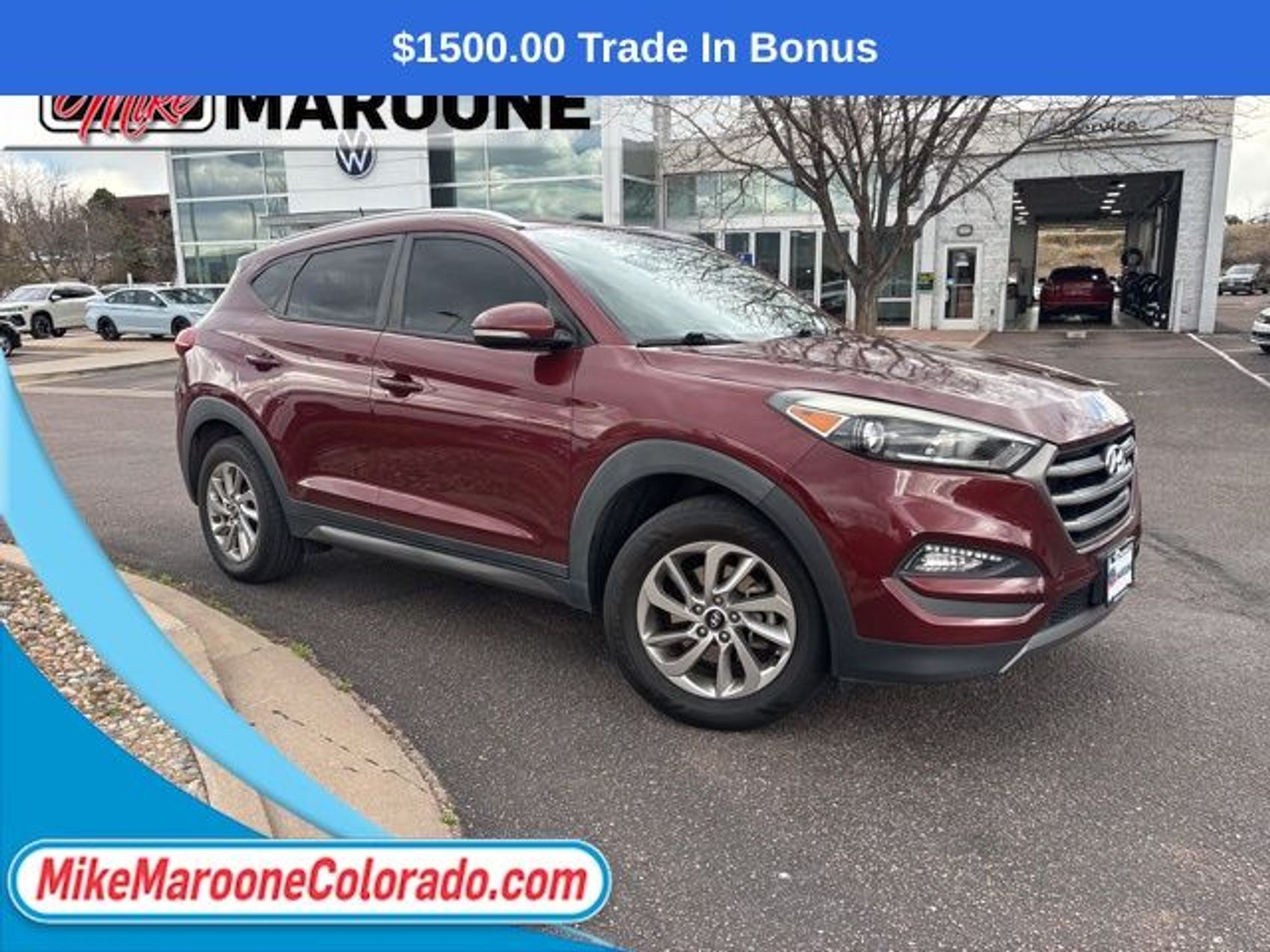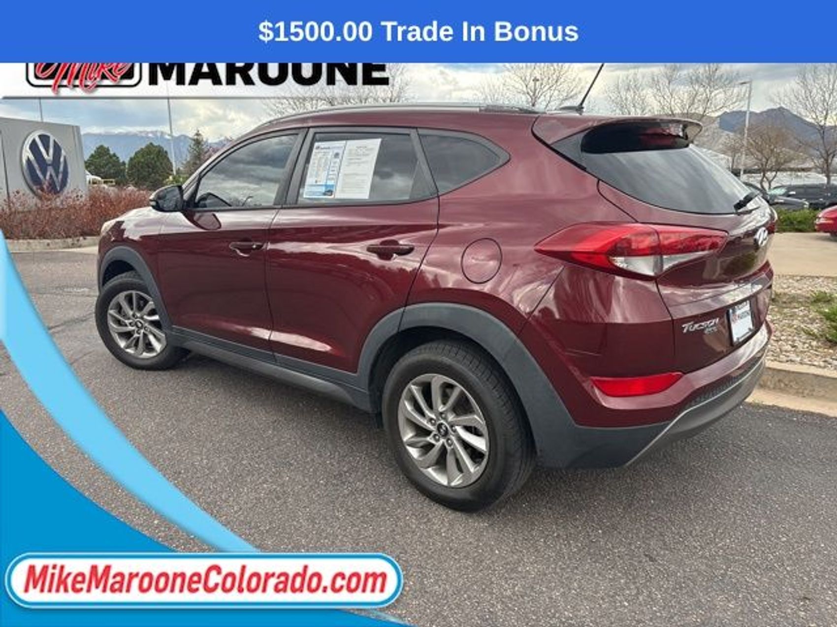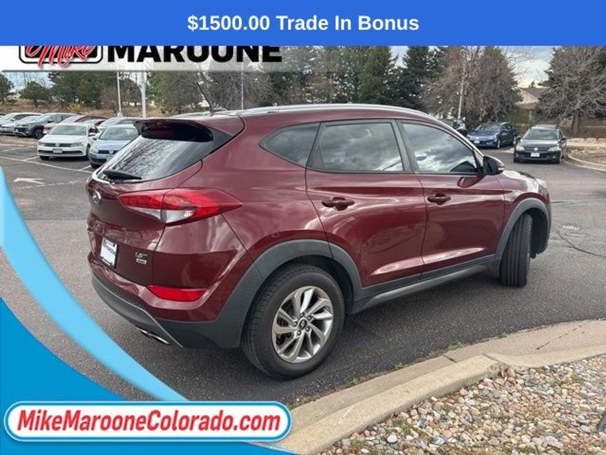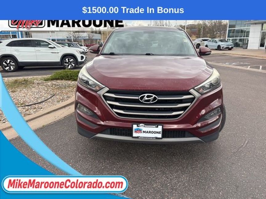 Recent Arrival! Reviews: * Turbocharged engine delivers peppy acceleration and good fuel economy; plenty of advanced safety and infotainment features are available; comfortable ride on rough roads. Source: EdmundsFREE DELIVERY ANYWHERE IN COLORADO **. Awards: * 2016 KBB.com 10 Best SUVs Under $25,000 * 2016 KBB.com Best Buy Awards Finalist * 2016 KBB.com 10 Best All-Wheel Drive Vehicles Under $25,000 * 2016 KBB.com 5-Year Cost to Own Awards 2016 Hyundai Tucson Eco AWD 7-Speed Automatic 1.6L I4 DGI Turbocharged DOHC 16V ULEV II 175hp Ruby Wine 25/31 City/Highway MPGThis Tucson is being sold AS IS. We consider this an opportunity for the buyer to purchase a vehicle at a reduced price. For more information or vehicles like it, stop by Mike Maroone today. We are just north of the Chapel Hills mall behind Walmart in the Chapel Hills Auto Mall.
