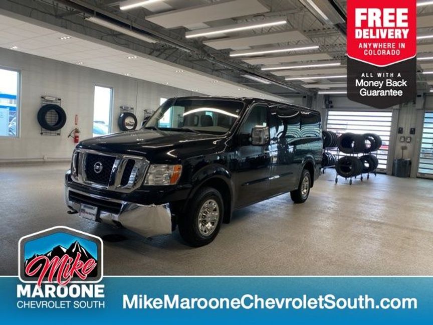 THIS 2016 Nissan NV Passenger SV IS BEING SOLD AS IS NO WARRANTY** THIS 2016 Nissan NV Passenger SV CAN BE FINANCED WITH APPROVED CREDIT**, COME SEE THIS BEAUTIFUL 2016 Nissan NV Passenger SV AT MIKE MAROONE CHEVROLET SOUTH 230 N ACADEMY BLVD COLORADO SPRINGS CO, 3 DAY 150 MILE MONEY BACK GUARANTEE**, FREE DELIVERY ANYWHERE IN COLORADO**, 3 FREE MONTHS XM RADIO (IF EQUIPPED)**, 3RD ROW SEATING**, AIR CONDITIONING**, ALLOY WHEELS**, BLUETOOTH – HANDS FREE**, FRESH OIL & FILTER CHANGE**, FRONT & REAR BRAKES**, PASSIVE ENTRY SYSTEM**, KEYLESS OPEN**, KEYLESS START**, KEYLESS ENTRY**, POWER HEATED OUTSIDE MIRRORS**, CRUISE CONTROL**, POWER WINDOWS**, POWER LOCKS**, POWER SEAT**, REAR BACK UP CAMERA**, REAR CROSS TRAFFIC ALERT**, SERVICE RECORDS AVAILABLE**, STEERING WHEEL AUDIO CONTROLS**. RWD Certification Program Details: THIS 2016 Nissan NV Passenger SV IS SOLD AS-IS NO WARRANTY** THIS VEHICLE COMES WITH A FULL MECHANICS INSPECTION AVAILABLE AT REQUEST** ALL SAFETY RELATED REPAIRS HAVE BEEN DONE TO THIS VEHICLE. THIS VEHICLE CAN BE FINANCED WITH APPROVED CREDIT. FOR MORE INFORMATION COME SEE US AT 230 N. ACADEMY BLVD COLORADO SPRINGS CO 80909. **SE HABLA ESPAÑOL TAMBIEN**