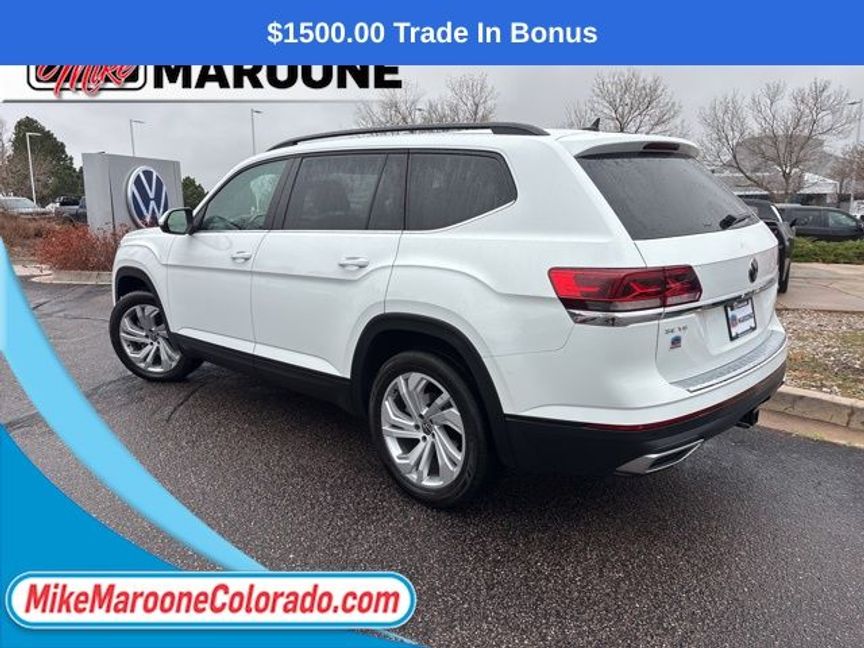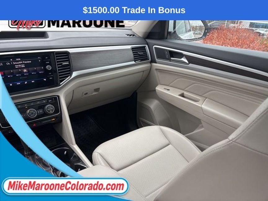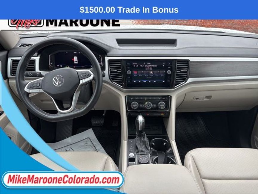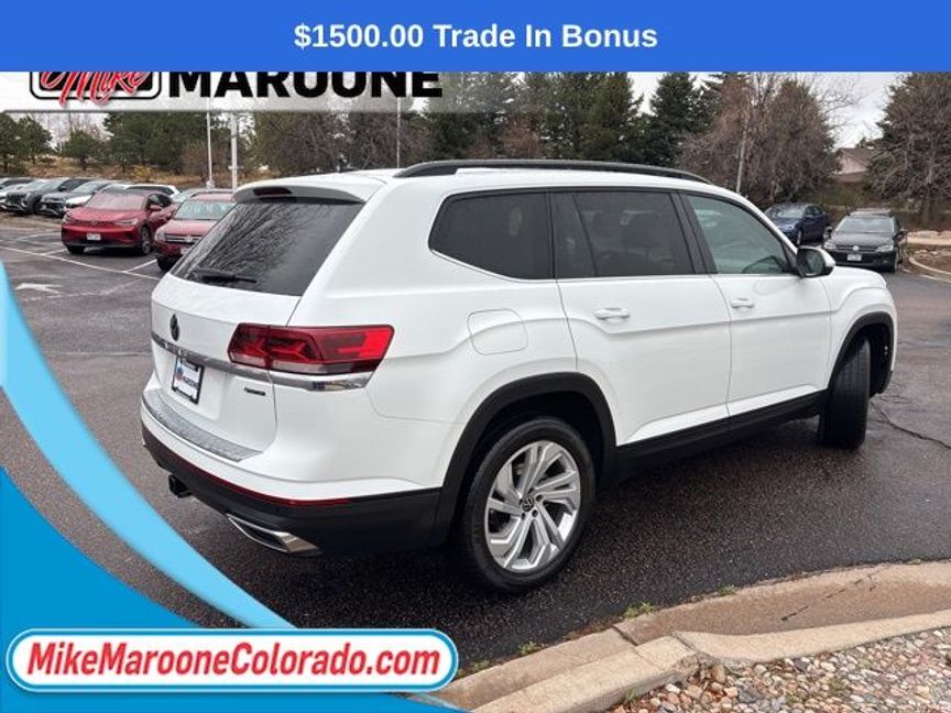 Clean CARFAX. ** VOLKSWAGEN CERTIFIED **, FREE DELIVERY ANYWHERE IN COLORADO **. 2023 Volkswagen Atlas 3.6L V6 SE w/Technology AWD 8-Speed Automatic with Tiptronic 3.6L VR6 Certified. Pure White Volkswagen Certified Pre-Owned Details: * Vehicle History * Model Year 2020 and Newer Vehicles: 2-Year or 24,000-Mile (whichever occurs first) Comprehensive Limited Warranty. Model Year 2019 Vehicles: 1-Year or 12,000-Mile (whichever comes first) Comprehensive Limited Warranty. Electric Vehicles Model Year 2019 & Newer: 3-Year or 36,000-Mile (whichever comes first) Comprehensive Limited Warranty. 2 Years of 24-Hour Roadside Assistance, Three Months of SiriusXM Platinum Plan Trial Subscription. * 100+ Point Inspection * Roadside Assistance * Warranty Deductible: $50Odometer is 13294 miles below market average!This Atlas also comes with the FULL Mike Maroone a 60-Day 3000 Mileage Powertrain Warranty. We will review the technician’s vehicle inspection report with you before purchase. Our intention is to provide you a completely transparent buying experiance. At Mike Maroone our used vehicles are Safety Checked, Warrantied, CarFax, and if you don’t like it … Bring it back! For more information or vehicles like it, stop by Mike Maroone North today. We are just north of the Chapel Hills mall behind Walmart in the Chapel Hills Auto Mall.