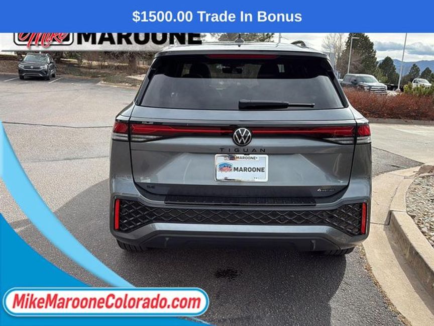 Clean CARFAX. CARFAX One-Owner. FREE DELIVERY ANYWHERE IN COLORADO **. 2025 Volkswagen Tiguan 2.0T SE R-Line Black AWD 8-Speed Automatic 2.0L TSI DOHC Platinum Gray Metallic 22/30 City/Highway MPGThis Tiguan also comes with the FULL Mike Maroone a 60-Day 3000 Mileage Powertrain Warranty. We will review the technician’s vehicle inspection report with you before purchase. Our intention is to provide you a completely transparent buying experiance. At Mike Maroone our used vehicles are Safety Checked, Warrantied, CarFax, and if you don’t like it … Bring it back! For more information or vehicles like it, stop by Mike Maroone North today. We are just north of the Chapel Hills mall behind Walmart in the Chapel Hills Auto Mall.