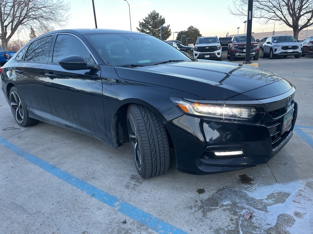 Recent Arrival at Mike Maroone Ford! FREE DELIVERY ANYWHERE IN COLORADO, Used 2018 Honda Accord Sport - Turbocharged Performance and Stylish Redesign, Exterior: Crystal Black Pearl Interior: Black Cloth Seat Trim Engine: 1.5L I-4 DOHC 16-Valve Turbocharged VTEC Engine Transmission: Continuously Variable Transmission (CVT) Drivetrain: Front-Wheel Drive (FWD), Experience the award-winning sedan that sets the standard for its class! This Used 2018 Honda Accord Sport boasts a complete, dynamic redesign, offering exceptional driving dynamics, a spacious cabin, and the sporty efficiency of a turbocharged VTEC engine. Available now at Mike Maroone Ford Longmont, this Accord is the perfect stylish, reliable, and fun commuter car., Sporty Performance & Efficiency: Turbocharged VTEC Power: The efficient 1.5L I-4 DOHC 16-Valve Turbocharged VTEC Engine delivers responsive acceleration and plenty of passing power, making highway driving effortless. Sport Handling: The Sport Trim includes standard features designed for a more engaging drive, including aggressive styling elements and 19-inch Machine-Finished Alloy Wheels with Black Inserts for a commanding look and better road grip. Continuously Variable Transmission (CVT): The smooth and intelligent CVT transmission optimizes power delivery and efficiency, providing an excellent blend of performance and fuel economy., Comfort & Technology: Sport-Specific Styling: The interior features Cloth Seat Trim with a sporty design and bolstered Front Bucket Seats. Infotainment: Includes a powerful 180-Watt AM/FM Audio System with standard connectivity features to keep you linked to your music and calls. Honda Sensing (Standard on Accord): This vehicle is typically equipped with the full suite of Honda Sensing safety and driver-assistive technologies (though not explicitly listed on this specific sticker, it is a standard model feature) including Collision Mitigation Braking System and Road Departure Mitigation., If you are looking for a reliable, redesigned sedan that prioritizes driver engagement and modern style, this 2018 Honda Accord Sport is the ideal vehicle., Call Mike Maroone Ford Longmont today at 303-776-3600 or visit us at 235 Alpine Street, Longmont, CO 80501 to experience the excitement of the Accord Sport! Crystal Black Pearl 2018 Honda Accord Sport 4D Sedan 1.5L I4 DOHC 16V Turbocharged VTEC CVT FWD.. Odometer is 5688 miles below market average! Black 2018 Honda Accord Sport 4D Sedan 1.5T I4 DOHC 16V Turbocharged VTEC CVT FWD
