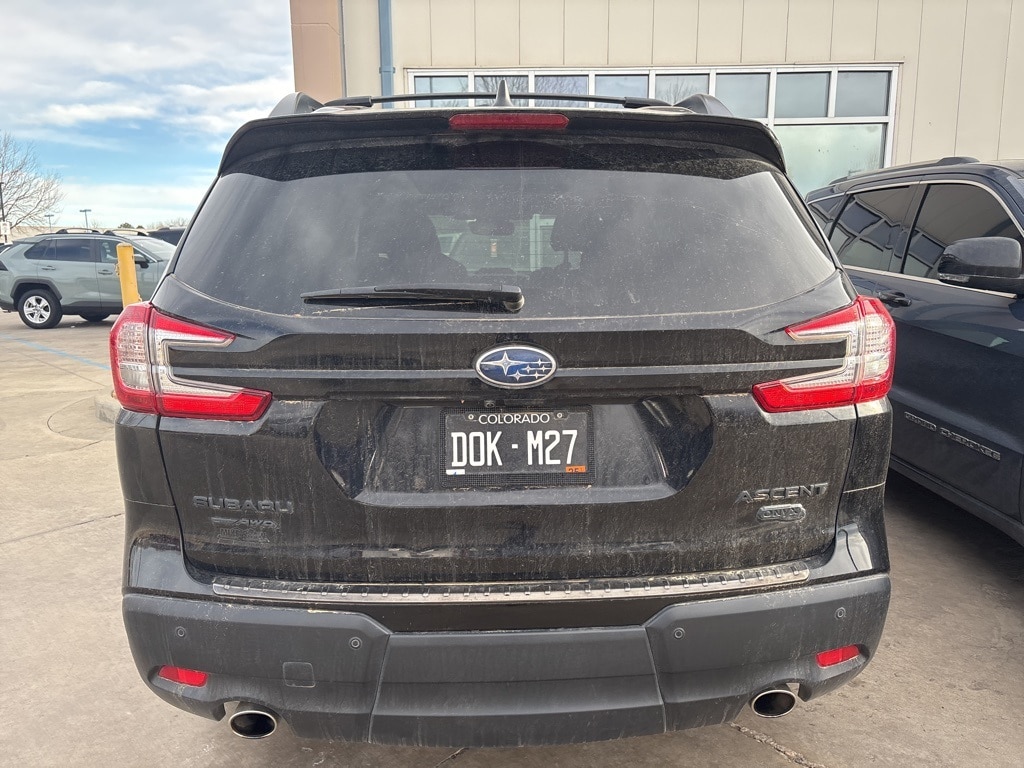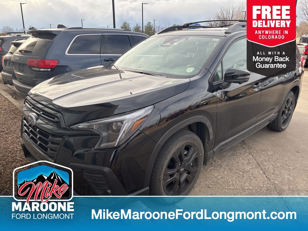 Recent Arrival! Mike Maroone Ford CARFAX One-Owner. FREE DELIVERY ANYWHERE IN COLORADO, ALL WHEEL DRIVE, This Subaru Ascent Onyx Edition is a versatile and family-friendly three-row SUV built for all-weather confidence and everyday comfort. Powered by a turbocharged SUBARU BOXER engine and equipped with Symmetrical All-Wheel Drive, it delivers confident traction in all road conditions. The Onyx Edition stands out with blacked-out exterior accents, unique wheels, and rugged styling. Inside, enjoy a spacious 7-passenger interior, StarTex water-repellent upholstery, heated front seats, and a power drivers seat. Advanced technology includes a large touchscreen with Apple CarPlay and Android Auto, Bluetooth connectivity, multiple USB ports, and a premium sound system. Safety is a key highlight with Subaru EyeSight Driver Assist Technology, Blind-Spot Detection, Rear Cross-Traffic Alert, Adaptive Cruise Control, Lane Keep Assist, and a rear-view camera. Additional conveniences like a power rear gate, tri-zone automatic climate control, and versatile folding rear seats make this Ascent ideal for families, road trips, and active lifestyles. Perfect for buyers searching for a used Subaru Ascent Onyx Edition AWD, three-row SUV with advanced safety, or a family SUV with all-weather capability.. Odometer is 16775 miles below market average! Crystal Black Silica 2023 Subaru Ascent Onyx Edition 4D Sport Utility 2.4L 4-Cylinder DOHC 16V Lineartronic CVT AWD