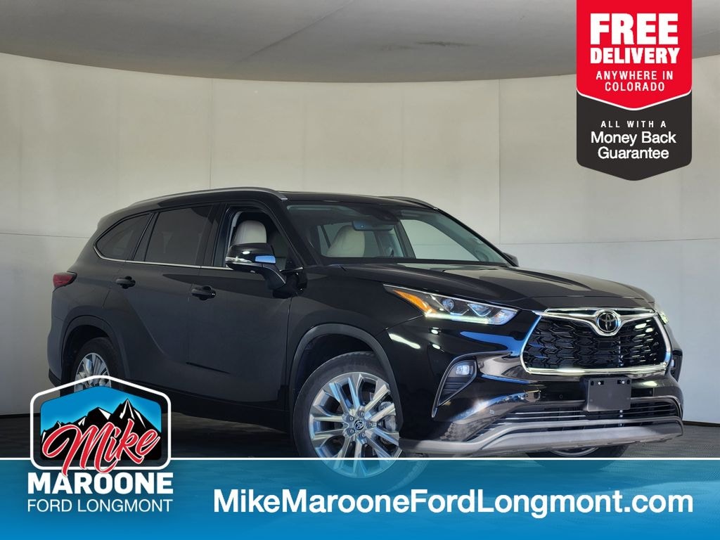 Recent Arrival! FREE DELIVERY ANYWHERE IN COLORADO, 2023 Toyota Highlander Limited V6 AWD, VIN 5TDDZRBH9NS173616, 3.5L V6 Engine, 8-Speed Automatic Transmission, Midnight Black Metallic Exterior, Black Interior, All-Wheel Drive, 20-Inch Alloy Wheels, LED Headlights and Fog Lights, Power Tilt/Slide Moonroof, Hands-Free Power Liftgate, Leather-Trimmed Heated and Ventilated Front Seats, Heated Second-Row Captains Chairs, Third-Row Seating, 12.3-Inch Touchscreen with Navigation, JBL Premium Audio System, Apple CarPlay and Android Auto, Wireless Charging, Head-Up Display, Blind Spot Monitor with Rear Cross-Traffic Alert, Pre-Collision System with Pedestrian Detection, Full-Speed Dynamic Radar Cruise Control, Lane Departure Alert with Steering Assist, Lane Tracing Assist, Automatic High Beams, Smart Key with Push Button Start, 23 MPG Combined (20 City / 27 Highway), Delivery, Processing and Handling Fee $1,215.00, Total MSRP $48,841.00. Priced below KBB Fair Purchase Price! Odometer is 22373 miles below market average! Midnight Black Metallic 2022 Toyota Highlander Limited 4D Sport Utility 3.5L V6 DOHC 8-Speed Automatic AWD